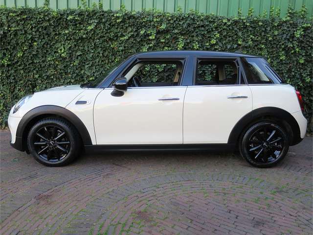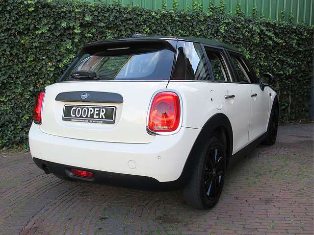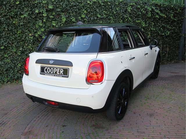 Zeer nette, goed onderhouden Mini Cooper 1.5 One Business Edition F55 5-deurs in een leuke kleurencombi: Pepper White met een zwart dak, zwarte spiegelkappen en zwarte 16" lichtmetalen velgen! Het interieur past perfect bij de buitenkant: Stoffen Firework Carbon Black bekleding met een Carbon Black Colourline! Daarnaast is deze 5-deurs Mini uitgerust met airconditioning, multifunctioneel lederen 3-spaaks sportstuurwiel met cruise control, MINI Connected, Navigatie, Apple CarPlay, bluetooth, Isofix, Park Distance Control (PDC) achter, regensensor, opbergpakket en lichtpakket.Zoals bij ons gebruikelijk wordt ook deze Mini standaard afgeleverd met een onderhoudsbeurt volgens schema, een nieuwe APK en 12 maanden Bovag-garantie.