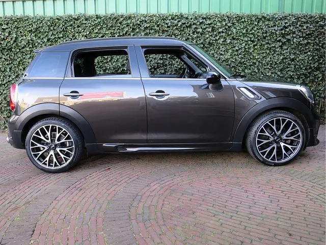Zeer complete Mini Countryman R60 Cooper S Automaat in de kleur Midnight Grey metallic met een John Cooper Work aerodynamicapakket en een half leder Paral.Lines Light Tobacco interieur met Inlay Colour Polar Beige, Piano Black interieurdelen en zwarte hemelbekleding. Deze Countryman is slechts 56.000km geleden afgeleverd met een JCW Chili pakket, een Wired pakket (bluetooth telefoonvoorbereiding, multimedia-voorbereiding, navigatiesysteem full map, spraakbediening), Panoramadak, Harman Kardon Hifi-systeem, leder multifunctioneel sportstuur met schakelflippers, sportknop, cruise control, regensensor, climate control, sportstoelen met stoelverwarming, middenarmsteun, Xenon verlichting met adaptieve koplampen, LED-mistlampen, Extra getint glas achter, 19" Cross Spoke Crusher velgen, vlakke laadvloer, Isofix en een opberg- en lichtpakket.Uiteraard wordt deze Mini Countryman afgeleverd met een onderhoudsbeurt volgens schema, een nieuwe APK en 12 maanden Bovag-garantie.