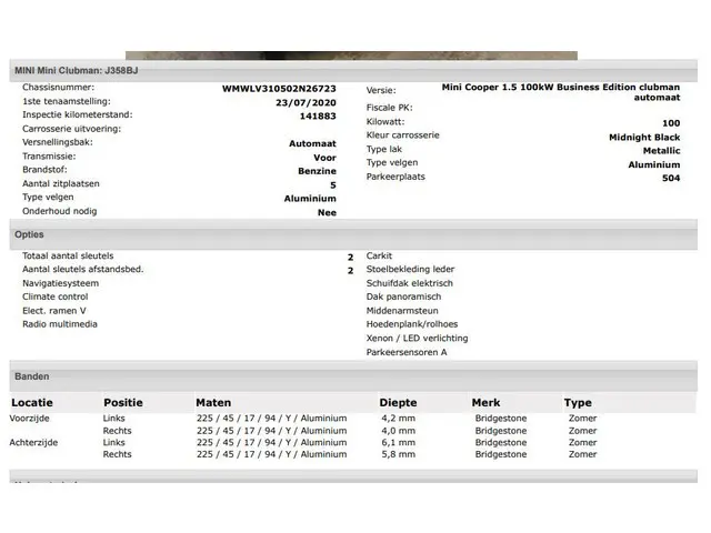 Voertuiggegevens van deze Mini Clubman