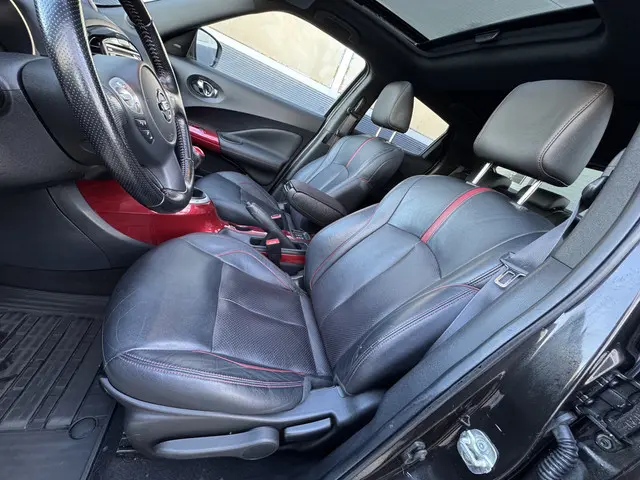 .De krachtige lijnen van deze SUV springen direct in het oog. Dit is een Nissan Juke uit 2018 die 99885 kilometer heeft gelopen. Een krachtige benzinemotor zorgt voor de aandrijving van deze SUV. Van binnen is deze Nissan Juke mooi uitgevoerd met een classy lederen interieur. Op koude en donkere dagen zijn de verwarmbare voorstoelen een uitkomst. Als u blij wordt van licht en ruimte dan zult u zeker genieten van het elektrisch bediende panoramadak. Ook 17 inch lichtmetalen velgen, LED-dagrijverlichting, donker getint glas achter en in delen neerklapbare achterbank horen tot de voorzieningen op deze auto.