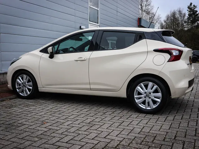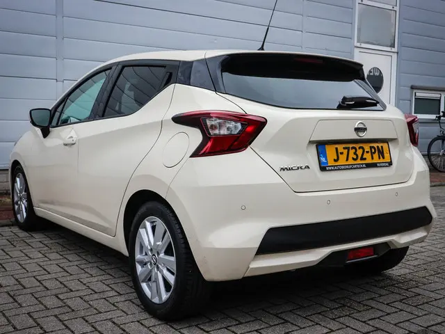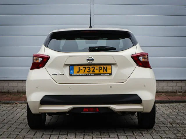 Dit is nu typisch een auto die u goed moet bekijken. Want hij zal u beslist verrassen met zijn ruimte en zijn rijkwaliteiten. Deze Nissan Micra heeft 75885 kilometer op de teller staan, hij is van het bouwjaar 2020. Met zijn benzinemotor en automatische transmissie is dit een prima auto voor nog vele kilometers. Tot de uitrusting behoren ook 16 inch lichtmetalen velgen, LED-dagrijverlichting, donker getint glas achter, in delen neerklapbare achterbank en snelheidsafhankelijke stuurbekrachtiging.Kinderfietsje niet gezien bij het inparkeren? Dat gebeurt u nooit meer. Daar zorgt de achteruitrijcamera wel voor! Gemakkelijk en veilig is de bediening het audiosysteem en het navigatiesysteem met knoppen op het stuur. De audio-kwaliteit is geweldig, dankzij de DAB-ontvangst. De kans op een kop-staart botsing wordt sterk gereduceerd door het systeem van achteropkomend verkeer waarschuwing. Stel de cruise control in op de gewenste snelheid en u rijdt comfortabel en zuinig. Met de aanwezige airconditioning bepaalt u zelf het binnenklimaat. En dan is deze auto ook nog eens voorzien van lederen stuur, centrale deurvergrendeling met afstandsbediening en boordcomputer.