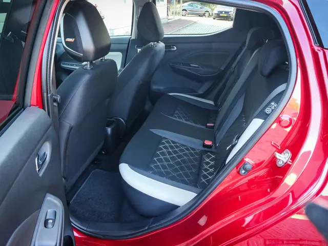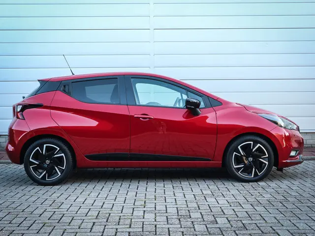 Ontdek het plezier van rijden opnieuw met deze sprankelende compacte auto, perfect voor stadsritten en daarbuiten. Met de pittige benzinemotor en de handgeschakelde vijfversnellingsbak manoeuvreert u moeiteloos door het verkeer. Bij de uitrusting van deze Nissan horen onder meer LED-dagrijverlichting, donker getint glas achter, in delen neerklapbare achterbank en snelheidsafhankelijke stuurbekrachtiging.Het audiosysteem met dab-radio biedt glasheldere geluidskwaliteit, u bedient dit veilig via het stuurwiel. Geen parkeervak is te klein dankzij de assistentie van de parkeersensoren. Het drukke verkeer eist onderweg al uw aandacht op. Daarom is het goed dat deze Nissan is voorzien van diverse systemen die u assisteren tijdens de rit. Een automatisch inschakelbare verlichting neemt het waar als het donker wordt of gaat schemeren, en schakelt dan automatisch de verlichting in. Op dezelfde manier "ziet" de regensensor de eerste spatjes regen en schakelt dan de ruitenwissers in, en als het harder gaat regenen zet hij de ruitenwissers ook in een snellere stand. Deze Nissan is bovendien voorzien van cruise control. Dus comfortabel en zuinig rijden verzekerd! Natuurlijk is er in deze auto airconditioning aanwezig. En deze auto heeft ook centrale deurvergrendeling met afstandsbediening, bagage afdekhoes, boordcomputer en verstelbaar stuur als standaard uitrusting.