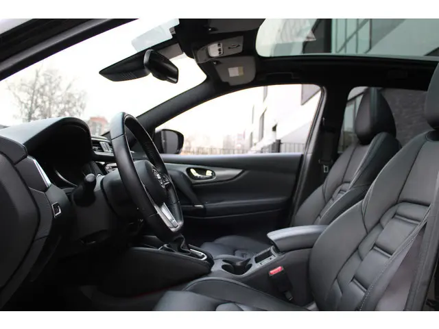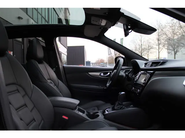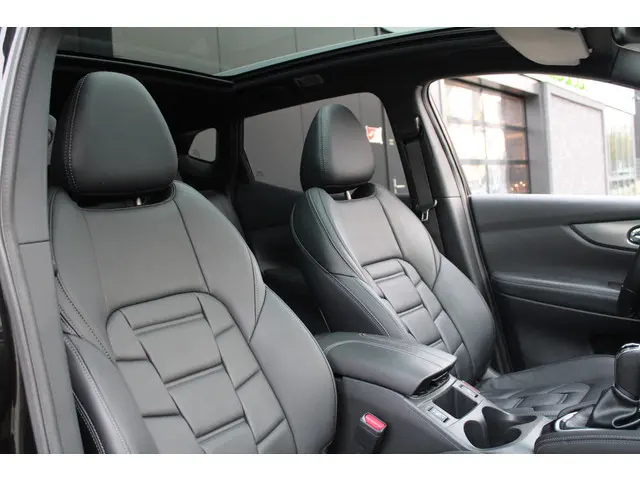 'Innovation that excites' omschrijven ze bij Nissan het rijgevoel. En terecht, want deze Japanner loopt al jaren voorop in techniek. De aandrijving van deze Nissan wordt verzorgd door een viercilinder benzinemotor en een automatische transmissie. Leren bekleding versterkt de topklasse uitstraling van het interieur. Tijdens gure dagen is het prettig zitten in de verwarmbare voorstoelen. Vergezichten krijgen een extra dimensie door het glazen panoramadak. Verder is de Nissan uitgerust met: 19 inch lichtmetalen velgen, LED koplampen, donker getint glas achter, in delen neerklapbare achterbank, LED-achterlichten en verstelbare lendensteunen.Het inventieve 360 graden camerasysteem op deze auto heeft de functie om u assistentie te bieden in nauwe ruimtes en straten, waar het achteruit rijden vaak een uitdaging is. Hoog, laag, midrange: het high performance audiosysteem is volledig afgestemd op de akoestiek in deze auto. Het full map navigatiesysteem zorgt ervoor dat u snel en ontspannen op uw bestemming aankomt. Natuurlijk is er ook automatische airconditioning aanwezig. Volume aanpassen, andere radiozender? U bedient het audiosysteem veilig en handig met de functies op het stuur. De uitrusting van deze Nissan is met DAB ontvangst, regensensor, cruise control, automatisch dimmende binnenspiegel en verstelbaar stuur behoorlijk compleet.