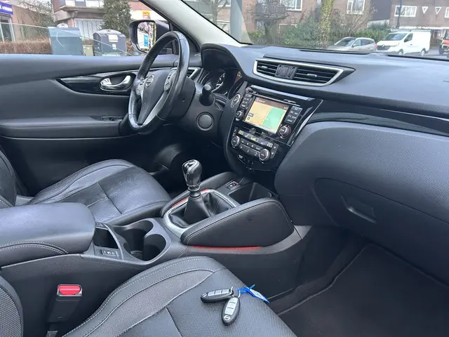 Distributie ketting is reeds vervangen en wel bij160.000 km.Bij het ontwerpen van de Nissan Qashqai stonden uw comfort en uw veiligheid centraal. Een benzinemotor en een handgeschakelde zesversnellingsbak zorgen dat u met deze SUV prima vooruitkomt. Ouderwets vakmanschap en natuurlijke materialen komen samen in het lederen interieur. Deze Nissan Qashqai heeft verwarmbare voorstoelen, voor zowel bestuurder als bijrijder. Geniet van de lichtinval en het uitzicht van het grote glazen panoramadak. U wordt in deze auto ook getrakteerd op 19 inch lichtmetalen velgen, LED koplampen, donker getint glas achter en in delen neerklapbare achterbank.De vier camera's genereren samen een 360 graden beeld rond de auto, zodat u een volledig overzicht hebt van wat er rondom uw auto gebeurt. Terwijl het navigatiesysteem de ideale route voor u uitstippelt, geniet u van de kwaliteit van het audio-installatiesysteem met DAB-ontvangst. De bediening is bovendien gemakkelijk via knoppen op het stuur. Met de automatische airconditioning selecteert u de gewenste temperatuur. Het systeem doet de rest. De parkeersensoren vertellen precies hoe ver u kunt gaan. Hoe dichter op een obstakel, hoe sneller de piepjes. Natuurlijk is een complete auto als deze ook voorzien van sensoren die de omgeving in de gaten houden. Deze Nissan heeft niet alleen een automatisch inschakelbare verlichting aan boord, maar ook een regensensor. Natuurlijk behoren cruise control, keyless entry, buitentemperatuurmeter, automatisch dimmende binnenspiegel, isofix-aansluiting en centrale deurvergrendeling met afstandsbediening ook tot de uitrusting van deze complete auto.