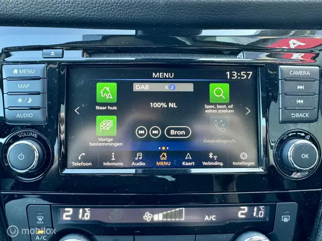 Het inventieve 360 graden camerasysteem op deze auto heeft de functie om u assistentie te bieden in nauwe ruimtes en straten, waar het achteruit rijden vaak een uitdaging is. Een belangrijke veiligheidsvoorziening is de bediening van het audio-installatiesysteem via knoppen op het stuur en middels spraakbediening. DAB-ontvangst geeft daarbij een kraakheldere ontvangst. U verwacht natuurlijk automatische airconditioning in deze auto, en die is er dan ook. Parkeersensoren zijn een handig hulpmiddel om parkeerschades te voorkomen. Natuurlijk is een complete auto als deze ook voorzien van sensoren die de omgeving in de gaten houden. Deze Nissan heeft niet alleen een automatisch inschakelbare verlichting aan boord, maar ook een regensensor. Deze auto is voorzien van WIFI-hotspot, cruise control, centrale deurvergrendeling met afstandsbediening en verstelbaar stuur.