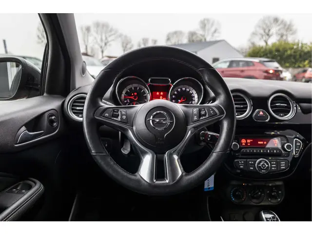 Praktisch in gebruik en ruim van binnen, met dat doel is deze Opel ADAM ontworpen. De aandrijving van deze Opel wordt verzorgd door een viercilinder benzinemotor en een automatische transmissie. Het met leer beklede interieur is comfortabel en stijlvol. Winterse omstandigheden? Geniet dan van het comfort van de stoelverwarming! Nooit meer koude handen of koude vingers in de auto. Stuurverwarming zorgt ervoor dat het stuur behaaglijk warm aanvoelt. Bij de rijke uitrusting horen ook 17 inch lichtmetalen velgen, donker getint glas achter, in delen neerklapbare achterbank en snelheidsafhankelijke stuurbekrachtiging.Spraakbediening herkent uw stem en voert opdrachten uit terwijl u beide handen aan het stuur houdt. Waar u zelf ook bent, u staat altijd in contact met de auto via de app op uw smartphone. Zo controleert u uiteenlopende functies, ook op afstand. Cruise control verlaagt de brandstofkosten en verhoogt het rijcomfort. Bluetooth met audiostreaming verbindt uw smartphone draadloos met het audiosysteem. In de zomer zit u ontspannen achter het stuur dankzij de ingebouwde airconditioning. Extra opties op deze auto zijn: isofix-aansluiting, usb-aansluiting, centrale deurvergrendeling met afstandsbediening, toerenteller en lederen versnellingspook.