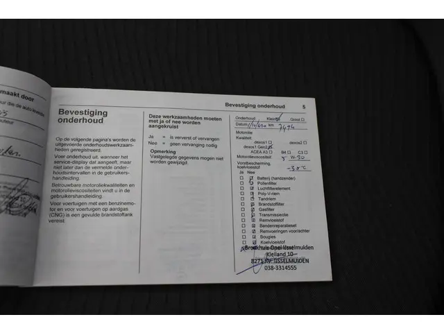 - Onderhoudsboekje (fysiek)