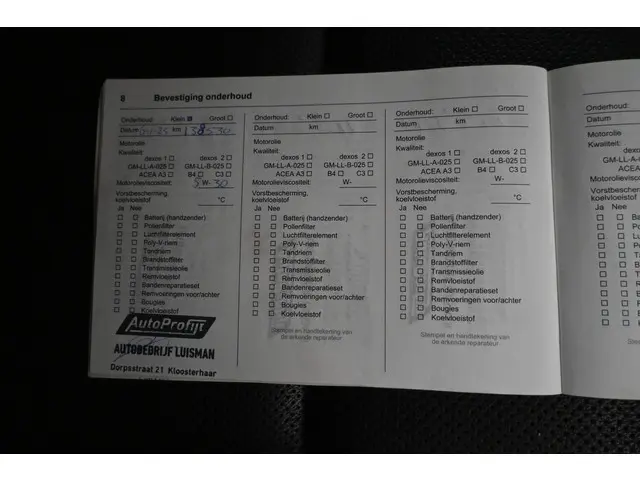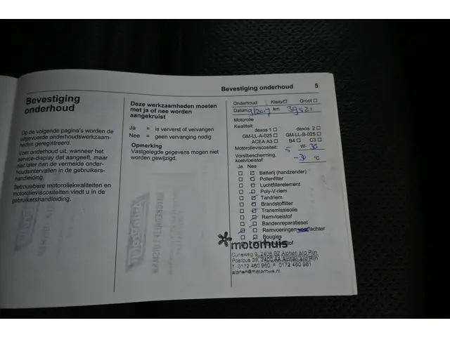 Onderhoudsboekjes: Aanwezig