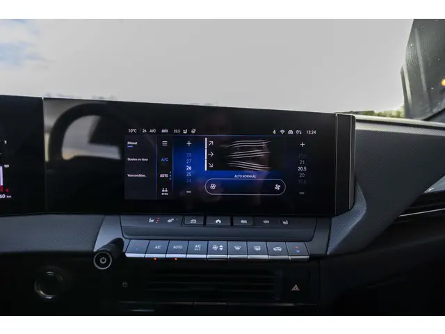 U hoeft geen grote auto om toch ruimte te hebben als het nodig is. Da's nou typisch een van de extra's die deze hatchback biedt. Natuurlijk is de actieradius mede afhankelijk van de weersomstandigheden, maar een volle acculading is over het algemeen voldoende voor de gewone dagelijkse ritten. Het opladen kan gewoon 's nachts, terwijl u slaapt. De krachtige motor geeft deze Opel uitstekende prestaties. De hoogwaardige, lederen bekleding benadrukt de kwaliteit van deze Opel. Koude start? Niet met de verwarmbare voorstoelen! In deze sportstoelen voel je je één met je auto. Het interieur lijkt groter en ruimtelijker dankzij het elektrisch bedienbare glazen panoramadak. Beknibbelen op comfort is er niet bij met deze Opel Astra Electric. Hij is zelfs voorzien van een verwarmd stuurwiel! U wordt in deze auto ook getrakteerd op 18 inch lichtmetalen velgen, LED koplampen, zwarte hemelbekleding, donker getint glas achter, in delen neerklapbare achterbank en LED-achterlichten.De standkachel is een ideale optie voor de koude maanden. U stapt altijd in een voorverwarmde auto en hoeft nooit meer ruiten te krabben. Wat ook opvalt, is de strakke en overzichtelijke informatie die het digitale dashboard levert. Het gebruik van de 360 graden camera op deze auto vergemakkelijkt het parkeren aanzienlijk, vooral in krappe ruimtes. Adaptive cruise control houdt de ingestelde snelheid vast en houdt afstand tot het voertuig voor u. Bedient u de auto liever met uw stem? Dan is het goed om te weten dat spraakbediening aanwezig is. Deze Opel is voorzien van navigatiesysteem, automatische airconditioning, draadloos opladen, DAB ontvangst, regensensor en keyless entry.