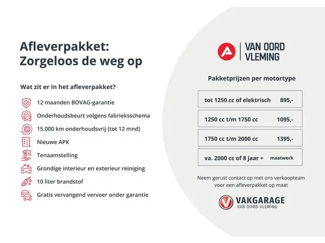 De vermelde verkoopprijzen van onze occasions zijn altijd inclusief de niet vermijdbare kosten, zoals bijvoorbeeld een geldige APK en de tenaamstelling van het voertuig.Daarnaast kunt u kiezen uit meerdere onderhouds- en zekerheidspakketten, zodat deze geheel op uw wensen aansluiten.
