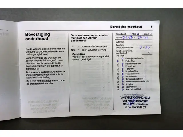 - Onderhoudsboekje (fysiek)