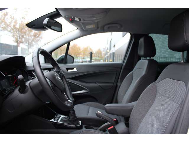 Het doordachte ontwerp van de Opel Crossland maakt hem tot een comfortabele en veelzijdige auto voor het hele gezin. Een krachtige driecilinder benzinemotor en een prettige handgeschakelde zesversnellingsbak zorgen voor de aandrijving van deze stoere Opel. Een weldaad voor u en uw bijrijder: deze Opel Crossland heeft verwarmbare voorstoelen. De uitmonstering van deze auto wordt gecompleteerd door onder meer 16 inch lichtmetalen velgen, LED koplampen, donker getint glas achter en in delen neerklapbare achterbank.Hoeveel ruimte heeft u nog bij het inparkeren? De achteruitrijcamera brengt helder in beeld wat zich achter de auto bevindt en geeft een geluidssignaal. U rijdt snel, zuinig en zeker naar uw bestemming met het navigatiesysteem. Met electronic climate control hoeft u alleen de gewenste temperatuur in te stellen. Het systeem doet de rest. Audio-aanpassingen doen zonder de weg uit het oog te verliezen? Daar zorgt de audiobediening op het stuur voor! Met de DAB-ontvanger luistert u naar glasheldere digitale radio. De uitrusting van deze auto is met regensensor, cruise control, automatisch dimmende binnenspiegel, lederen stuur en boordcomputer behoorlijk compleet.