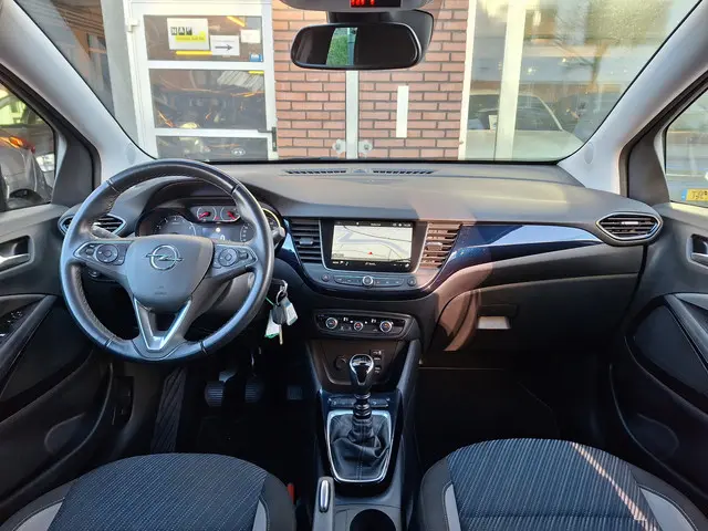 Duitse automerken staan bekend om hun innovatiekracht, topkwaliteit en uitstekende prestaties. Zo ook bij deze dealer onderhouden Opel Crossland X. Een en al Duitse klasse. De aandrijving van deze SUV komt voor rekening van een driecilinder benzinemotor en een handgeschakelde zesversnellingsbak. Met Apple CarPlay (voor iPhone) en Android Auto (voor Android) gebruik je navigatie, muziek en berichten veilig via het scherm van je auto. Bediening gaat eenvoudig via spraak, touchscreen of knoppen. Slim, veilig en handig onderweg. Tot de uitrusting van deze Opel behoren ook 16 inch lichtmetalen velgen, LED koplampen, donker getint glas achter en in delen neerklapbare achterbank.Met de achteruitrijcamera ziet u precies wat er achter de auto gebeurt. Als u regelmatig met een aanhanger of een fietsendrager op pad bent, is de afneembare trekhaak een praktische extra. Connected Services zorgen ervoor dat de belangrijkste functies en data van de auto altijd en overal te checken zijn. Gewoon via de app op de smartphone. Deze Opel is voorzien van knoppen op het stuur om het full map navigatiesysteem en het audio-installatiesysteem met DAB-ontvangst te bedienen. Met automatische airconditioning hoeft u alleen de gewenste temperatuur in te stellen. Het systeem doet de rest. En deze auto heeft ook regensensor, cruise control, automatisch dimmende binnenspiegel, parkeersensoren, lederen stuur en centrale deurvergrendeling met afstandsbediening als standaard uitrusting.