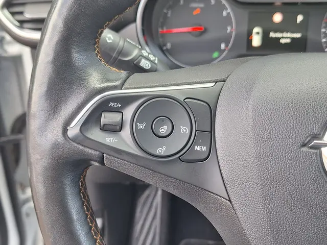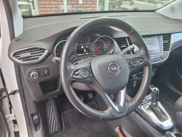 Ontspannen en zorgeloos autorijden, dat doet u met deze dealer onderhouden Opel Crossland X Automaat. Een benzinemotor en een automatische transmissie zorgen dat u met deze SUV prima vooruitkomt. Tijdens gure dagen is het prettig zitten in de verwarmbare voorstoelen. Een ommetje of een lange trip? De comfortstoelen zorgen elke keer voor een goede zithouding! Bij de uitrusting van deze Opel horen onder meer verward stuurwiel, Apple Carplay, Android Auto, verwarmde voorruit, 17 inch lichtmetalen velgen, LED koplampen, donker getint glas achter, in delen neerklapbare achterbank en LED-achterlichten.Zelfs een kleine aanrijding kan flinke kosten veroorzaken. Gelukkig laat de achteruitrijcamera precies zien wat er zich achter de auto bevindt en geeft een waarschuwingssignaal. U weet altijd waar u moet zijn, dankzij het full map navigatiesysteem. Ook is de auto voorzien van automatische airconditioning. Gemak en veiligheid gaan prachtig samen. Bijvoorbeeld door de audiobediening op het stuur. Voor storingvrije digitale radio-ontvangst zorgt de DAB-ontvanger. Extra opties op deze auto zijn: regensensor, cruise control, keyless entry, automatisch dimmende binnenspiegel en lederen stuur.
