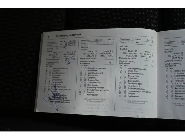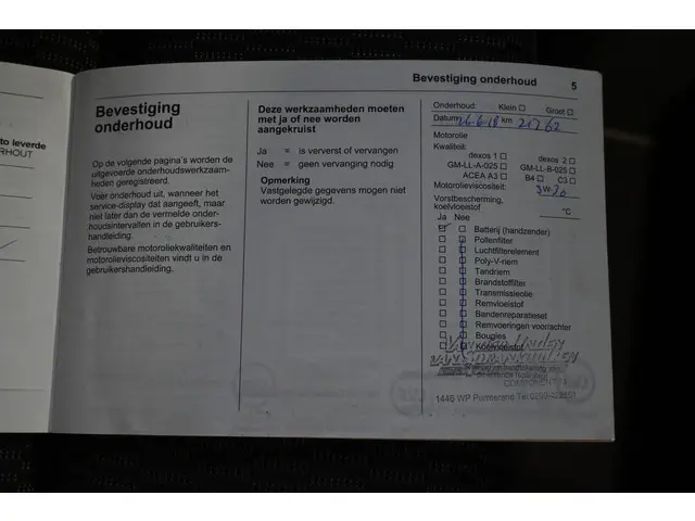 Onderhoudsboekjes: Aanwezig