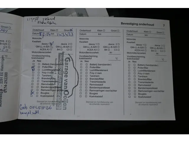 Onderhoudsboekjes: Aanwezig