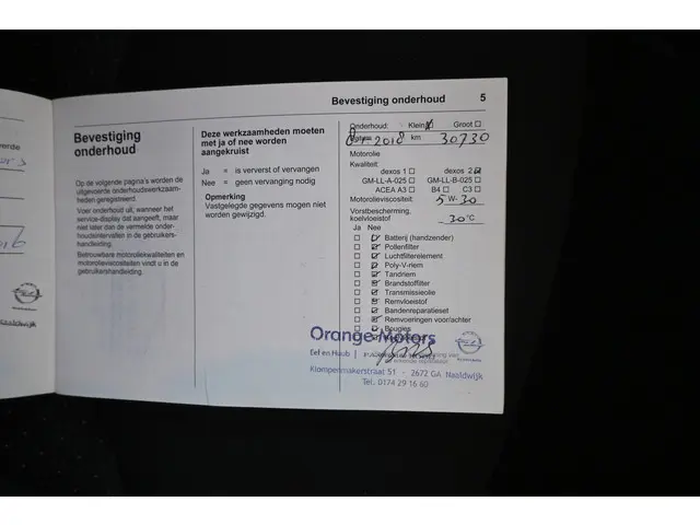 Onderhoudsboekjes: Aanwezig