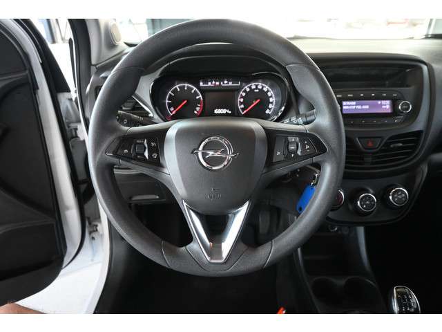 Deze Opel KARL lijkt kleiner dan-ie is. Maar dat moet u zelf ervaren. De motor is zuinig maar pittig, en maakt een vlotte rijstijl mogelijk. Tot de uitrusting van deze Opel behoren ook dakspoiler en in delen neerklapbare achterbank.Het stuur van deze auto heeft uiteenlopende functies. Ook om het geluid te regelen. De audiobediening op het stuur draagt daarom actief bij aan een veilige rit. De cruise control zorgt voor zorgeloos, ontspannen en zuinig rijgedrag. U vindt in deze auto ook airconditioning. Deze Opel is voorzien van centrale deurvergrendeling met afstandsbediening, boordcomputer en verstelbaar stuur.