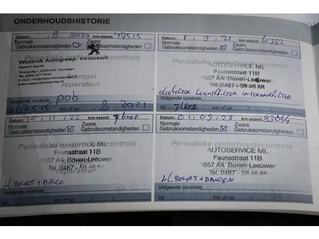 - Onderhoudsboekje (fysiek)