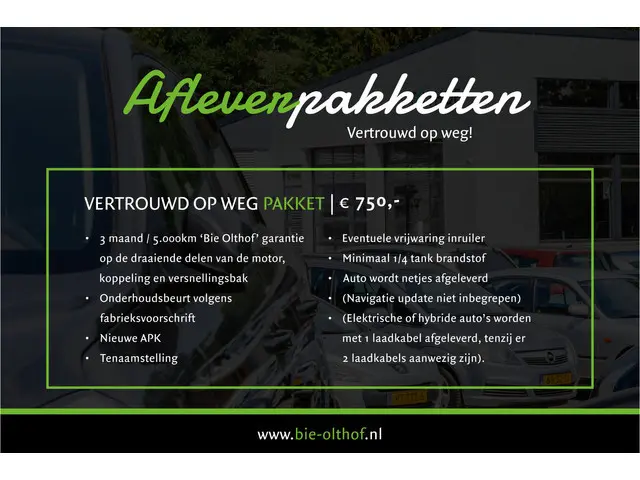 - 6 maanden / 10.000km Bie Olthof garantie*;