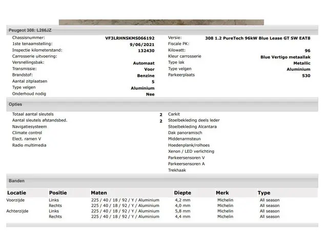 Voertuiggegevens van deze Peugeot 308