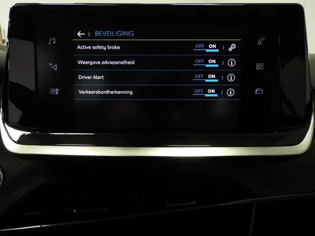 De nieuwste veiligheidssystemen komen in deze Peugeot e-208 samen. Onderweg zorgt verkeersborddetectie ervoor dat u geen waarschuwingsbord mist. Het Lane-keeping systeem let constant op en waarschuwt of corrigeert als u onoplettend over de lijnen van de rijstrook gaat. Voor meer veiligheid detecteert deze auto het risico van een aanrijding tijdig via de forward collision warning. In deze Peugeot vinden we verder een vermoeidheidsherkenning, autonoom remsysteem en bandenspanningcontrolesysteem.