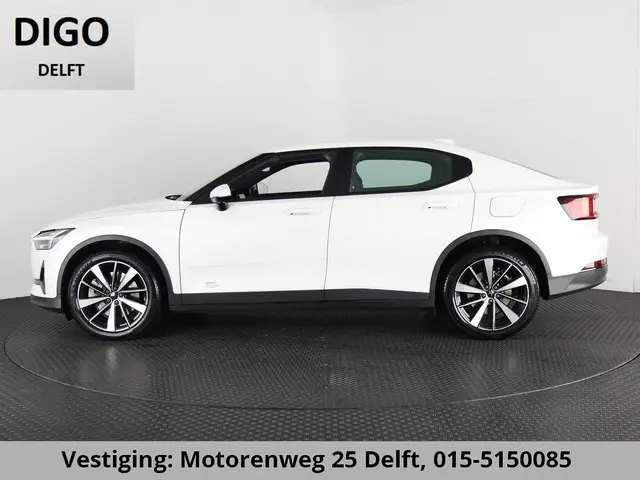 Intelligente technologie. Geen emissies en een fantastisch rijgedrag. Welkom in de Polestar 2. Fiscaal aantrekkelijk is de elektromotor, waarmee u niet alleen stil maar ook uitermate pittig kunt rijden. Winters instappen is er niet meer bij dankzij de stoelverwarming. De achterklep opent automatisch met een druk op de knop. Handig als u met volle handen staat. U wordt in deze auto ook getrakteerd op 19 inch lichtmetalen velgen, LED koplampen, in delen neerklapbare achterbank, LED-achterlichten, verstelbare lendensteunen en snelheidsafhankelijke stuurbekrachtiging.
