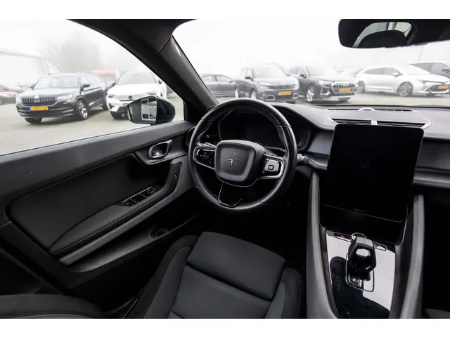 Bij het ontwerpen van de Polestar 2 stonden comfort en praktische bruikbaarheid centraal. Met de elektromotor rijdt u stil en snel de toekomst in. Maar ook schoon en zuinig. De krachtige motor geeft deze Polestar uitstekende prestaties. U past de stoelen moeiteloos aan, ze zijn elektrisch in te stellen en hebben bovendien een geheugen. Zelfs op de koudste dagen zorgt het verwarmbare stuurwiel, de voorstoelen en de achterbankverwarming ervoor dat u en uw passagiers het nooit koud hebben in deze luxueuze auto. Een praktische extra is de elektrisch bedienbare achterklep die opent en sluit met een druk op de knop. Het glazen panoramadak laat u genieten van een wijds uitzicht en meer lichtinval. Tot de voorzieningen van deze auto behoren 20 inch lichtmetalen velgen, Full LED koplampen, zwarte hemelbekleding, donker getint glas achter, in delen neerklapbare achterbank en LED-achterlichten.Snelheid, brandstofinfo, noem maar op. Het digitale dashboard houdt u permanent op de hoogte. Goed en overzichtelijk. De vier camera's die samen de 360 graden camera vormen, bieden u de mogelijkheid om obstakels in elke richting te zien. Met adaptive cruise control houdt deze auto automatisch afstand tot uw voorligger. Spraaksturing luistert naar uw stem en bedient de belangrijkste voertuigfuncties. In het zeldzame geval van een storing weet u nog eerder dan de monteur wat er mankeert. Uw smartphone met remote services geeft direct inzicht. Extra opties op deze auto zijn: premium audiosysteem, full map navigatiesysteem, WIFI-hotspot, automatische airconditioning, draadloos opladen en DAB ontvangst.