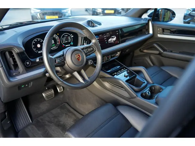 De Porsche Cayenne 3.0 E-Hybrid uit 2024 die wij aanbieden is een bijzonder exemplaar. Met een gecombineerd vermogen van 470 PK levert deze SUV indrukwekkende prestaties, terwijl de hybride aandrijving zorgt voor efficiënt brandstofverbruik en lagere emissies. Deze Cayenne combineert sportieve kracht met moderne technologie en luxe afwerking, precies zoals u van Porsche mag verwachten.De auto is uitgevoerd in een diep glanzende zwarte metallic lak, met een zwart lederen interieur en rode remklauwen – een tijdloze en sportieve kleurstelling die de krachtige uitstraling van deze SUV onderstreept. Met slechts 41.370 kilometer op de teller verkeert deze Porsche in uitstekende staat en is hij klaar voor vele zorgeloze kilometers.