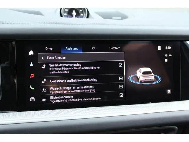 In de Porsche Cayenne heeft uw veiligheid en die van uw omgeving prioriteit. De head-up display is een geweldige extra: ogen op de weg en toch alle belangrijke functies in beeld! Verkeersbord-detectie herkent verkeersborden en toont deze op het instrumentarium van de auto. Ongemerkt buiten de rijstrook raken? Nee hoor, het Lane-keeping systeem waarschuwt en corrigeert. Bovenop deze veiligheidsfeatures heeft deze Porsche bovendien hill hold functie, brake assist en bandenspanningcontrolesysteem.