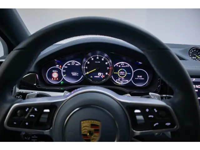 Alle technologie in de Porsche Cayenne Coupé is er op gericht om jouw rit veilig en gemakkelijk te laten verlopen. Dit mooie exemplaar uit 2021 heeft 54137 kilometer op de teller staan. Minder vaak tanken? Dat gaat lukken, dankzij de hybride motor die zowel op brandstof als elektriciteit werkt. Een mooie combi, die merkbaar is in de portemonnee. De lederen bekleding geeft het interieur een hoogwaardige uitstraling. Een weldaad voor jou en je bijrijder: deze Porsche Cayenne Coupé heeft verwarmbare voorstoelen. De achterklep opent automatisch met een druk op de knop. Handig als je met volle handen staat. Je wordt in deze auto ook getrakteerd op 21 inch lichtmetalen velgen, LED koplampen, adaptief dempingsysteem, warmtewerend glas, trailer assistent en dakspoiler.De vier camera's die samen de 360 graden camera vormen, bieden je de mogelijkheid om obstakels in elke richting te zien. Zoals je van zo'n jonge auto mag verwachten, zijn hier ook de geavanceerde remote services aanwezig. Simpelweg met een app op uw smartphone controleer je op afstand de status van de auto en bedien je diverse functies. De luidsprekers van het high performance audiosysteem omringen jou met een uitgebalanceerd geluid. Het comfort wordt verhoogd door de aanwezige electronic climate control. Parkeersensoren zijn een waardevolle toevoeging aan deze auto. De sensoren waarschuwen tijdens het parkeren en voorkomen schade aan de auto. Met dashboard met spraakbediening, navigatiesysteem met harde schijf, sportstuur met schakelpaddels, DAB ontvangst, regensensor en cruise control is deze auto helemaal compleet.