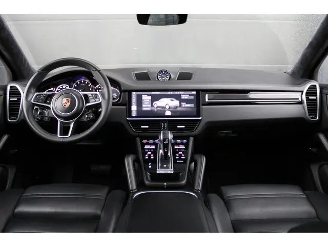 Het interieur van deze Porsche Cayenne Coupé beschermt u als een veilige cocon. Het onderstel is ontworpen om de scherpste bochten en de slechtste wegen aan te kunnen en de motor reageert alert op ieder commando. De hybridemotor geeft deze auto sportieve prestaties en zorgt voor een laag brandstofverbruik. Dat noemen ze nou een ruimtelijk effect: het elektrisch bediende glazen panorama dak, dat net zo gemakkelijk open en dicht gaat als de elektrisch bedienbare achterklep. En ondertussen het ware luxegevoel van het lederen interieur. De stoelverwarming maakt het interieur snel behaaglijk op koude dagen. Bij de uitrusting van deze auto horen onder meer 21 inch lichtmetalen velgen, LED koplampen, adaptief dempingsysteem, warmtewerend glas, trailer assistent en dakspoiler.De 360 graden camera op deze auto wordt verzorgd door vier geavanceerde camera's. Het biedt garantie van uitstekende beeldkwaliteit. Adaptive cruise control houdt de ingestelde snelheid vast en houdt afstand tot het voertuig voor u. Het infotainmentsysteem bedient u met uw vingers of met uw stem, met dank aan de geïntegreerde stembediening. Navigatie, onderhoudsstatus, vergrendeling, audio... de mogelijkheden van remote services zijn haast oneindig. Ook deze auto laat zich bedienen en analyseren via uw smartphone! Als belangrijke extra geldt zonder twijfel het high performance audiosysteem met topkwaliteit geluidsweergave. Deze Porsche is voorzien van navigatiesysteem met harde schijf, WIFI-hotspot, electronic climate control, schakelpaddles aan het stuur, DAB ontvangst en regensensor.