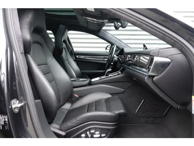 Bij het ontwerpen van de Porsche Panamera Sport Turismo stonden uw comfort en uw veiligheid centraal. Deze dealeronderhouden Panamera Sport Turismo is van het bouwjaar 2018, hij heeft 132593 kilometer gelopen. In deze auto vindt u een benzinemotor en een automatische transmissie. Wel eens luchtvering ervaren? Deze auto biedt elke keer een rimpelloze rit. De auto is voorzien van leren bekleding - een fraaie en sfeerverhogende extra. Zit u goed? De stoelen zijn eenvoudig instelbaar dankzij de elektrische bediening met geheugen. Het interieur glanst in daglicht door het elektrisch bedienbare panoramadak. De achterklep opent automatisch met een druk op de knop. Handig als u met volle handen staat. De koplampen met matrix LED-verlichting zijn het hoogst haalbare op het gebied van autoverlichting. Bij de uitrusting van deze auto horen onder meer adaptief dempingsysteem, warmtewerend glas, dakspoiler, in delen neerklapbare achterbank, LED-achterlichten en sportuitlaat.De 360 graden camera op deze auto wordt verzorgd door vier geavanceerde camera's. Het biedt garantie van uitstekende beeldkwaliteit. Als u de adaptive cruise control inschakelt, regelt de auto zelf de snelheid en de afstand tot de auto voor u. Na een lange werkdag in de file: daar zit niemand op te wachten. Gelukkig helpt de file assistent een handje. Het radarsysteem meet de ruimte tot de voorligger en bewaakt de juiste afstand. Stilstaan? Dan remt en stopt de auto vanzelf. Klassiek, pop, hip-hop of gesproken woord: het Bose audiosysteem levert de volmaakte geluidsweergave. Met electronic climate control hoeft u alleen de gewenste temperatuur in te stellen. Het systeem doet de rest. De uitrusting van deze Porsche is met dashboard met spraakbediening, Bose-audioinstallatie, navigatiesysteem met harde schijf, WIFI-hotspot, schakelpaddles aan het stuur en DAB ontvangst behoorlijk compleet.