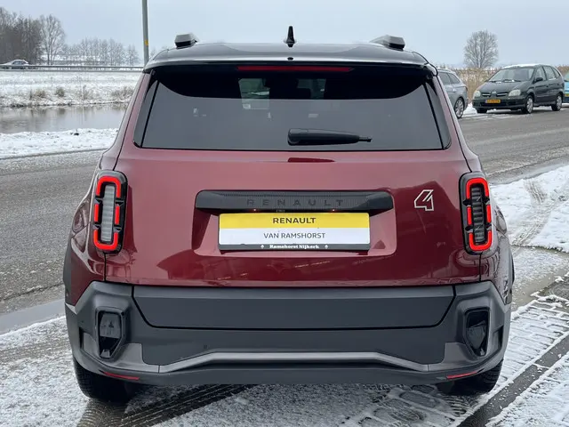 Hij biedt volop ruimte, deze Renault 4, en dankzij zijn elektrische aandrijving is er ook plenty vermogen voor een dynamische rijstijl. De elektromotor laat u geluidloos over de weg gaan. Wat een verademing, en zoveel power ook nog! Deze auto is bijna nieuw, ondanks dat hij uit 2025 komt; hij heeft slechts 403 kilometer afgelegd. Tijdens gure dagen is het prettig zitten in de verwarmbare voorstoelen. Ook 18 inch lichtmetalen velgen, Full LED koplampen, donker getint glas achter, in delen neerklapbare achterbank, LED-achterlichten en snelheidsafhankelijke stuurbekrachtiging horen tot de voorzieningen op deze auto.Bij het inparkeren laat de achteruitrijcamera precies zien hoeveel meter... decimeter... centimeter ruimte er nog is! Adaptive cruise control houdt de ingestelde snelheid vast en houdt automatisch afstand tot uw voorligger. Naast de routeinformatie van het navigatiesysteem kunt u muziek via het audio-installatiesysteem ook online beluisteren via bluetooth. Smartphones die zonder snoer kunnen opladen halen simpel een volle accu via de draadloze oplaadmogelijkheid voor telefoons. In complexe verkeerssituaties zorgt de kruisend verkeer detectie ervoor dat tegenliggers op het traject direct worden opgemerkt en geeft een waarschuwing. En deze auto heeft ook dashboard met spraakbediening, automatische airconditioning, regensensor, keyless entry, automatisch dimmende binnenspiegel en verstelbaar stuur als standaard uitrusting.