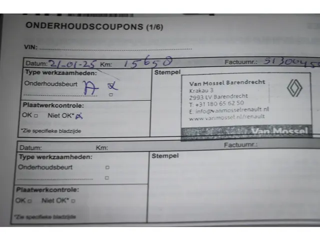- Onderhoudsboekje (fysiek)