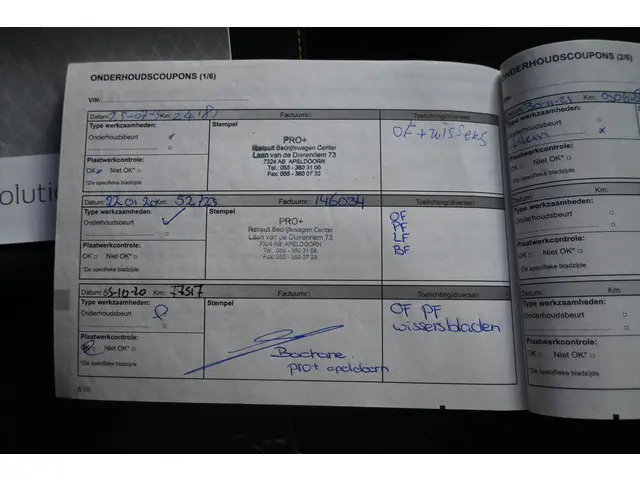 Onderhoudsboekjes: Aanwezig