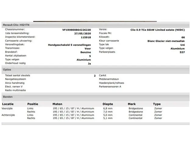 Voertuiggegevens van deze Renault Clio