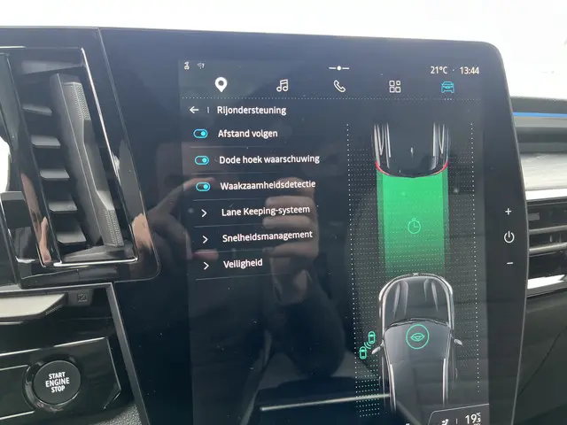 Tijdens de rit wordt u als bestuurder ondersteund door verschillende systemen die de weg en uw omgeving in de gaten houden. Deze Renault Espace is ook behulpzaam als het gaat om een rechte koers. Het Lane-keeping systeem signaleert en corrigeert als u onbedoeld de rijstrooklijnen dreigt te overschrijden. De actieve dodehoekdetectie draagt bij aan uw eigen veiligheid en die van uw medeweggebruikers. Om te voorkomen dat u tijdens lange ritten achter het stuur in slaap valt, is deze auto voorzien van vermoeidheidsherkenning. Dankzij veiligheidsvoorzieningen als hill hold functie, brake assist en bandenspanningcontrolesysteem, bent u steeds veilig onderweg.
