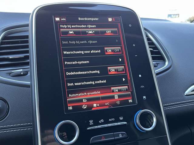De veelzijdigheid straalt van deze Renault Grand Scénic af, met zijn vijf deuren en vijf zitplaatsen. Met zijn benzinemotor en handgeschakelde zesversnellingsbak is dit een prima auto voor nog vele kilometers. Zijn geweldige zitcomfort dankt deze auto onder meer aan de massagefunctie in de bestuurdersstoel, en daarbij stoelverwarming en stoelventilatie. Bij de uitrusting van deze auto horen onder meer 20 inch lichtmetalen velgen, LED koplampen, halflederen bekleding, donker getint glas achter, LED-achterlichten en verstelbare lendensteunen.Voor een goed en duidelijk overzicht onderweg is het digitale dashboard uitermate slim ingedeeld. De achteruitrijcamera laat duidelijk zien hoeveel ruimte u nog heeft bij het inparkeren. De sensatie van superieur geluid wordt geleverd door het high performance audiosysteem. De automatische airconditioning zorgt voor een behaaglijk klimaat in de auto. Het luxeniveau in deze Renault is niet alleen gericht op comfort, maar ook op uw veiligheid. Tal van sensoren helpen u om de omgeving in de gaten te houden. De automatisch inschakelbare verlichting zorgt dat automatisch de verlichting wordt ingeschakeld als het donker wordt, wat bijvoorbeeld in tunnels erg handig is. En de regensensor zet de ruitenwissers aan zonder dat u eraan hoeft te denken. Wat u ook in deze auto kunt vinden zijn dashboard met spraakbediening, full map navigatiesysteem, WIFI-hotspot, DAB ontvangst, cruise control en keyless entry.