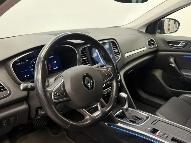 Bij de bouw van de Renault Mégane Estate wordt niets aan het toeval overgelaten. Vandaar dat hier een auto staat die in optimale conditie verkeert. De aandrijving van deze Renault wordt verzorgd door een viercilinder benzinemotor en een automatische transmissie. Stoelverwarming hoort ook bij de uitrusting van deze auto. Ook is de auto voorzien van: 17 inch lichtmetalen velgen, LED koplampen, donker getint glas achter, in delen neerklapbare achterbank, LED-achterlichten en verstelbare lendensteunen.Alle ritinformatie en communicatie is gebundeld in één overzichtelijk digitale dashboard. Soepel inparkeren gaat gemakkelijker dan u verwacht dankzij de achteruitrijcamera. U rijdt snel, zuinig en zeker naar uw bestemming met het navigatiesysteem. Ook is de auto voorzien van automatische airconditioning. Met de audiobediening op het stuur regelt u de geluidsinstallatie gemakkelijk en veilig. Met DAB ontvangst, regensensor, cruise control, keyless entry, automatisch dimmende binnenspiegel en lederen stuur is deze auto helemaal compleet.