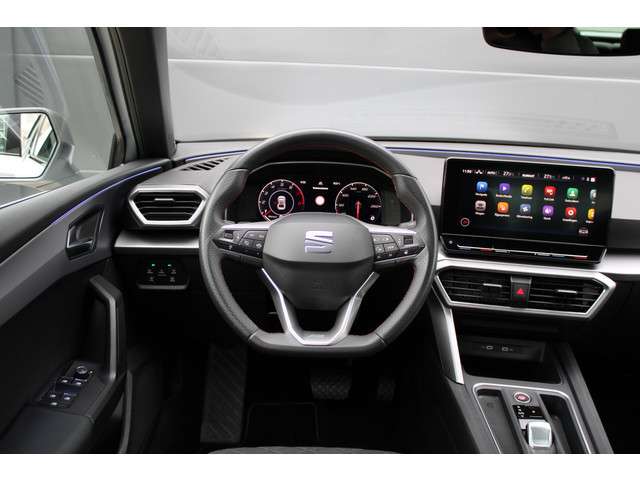 Seat koppelt Spaans temperament aan perfectionistische Duitse techniek. 'auto emocion' noemen ze dat zelf. De benzinemotor geeft deze auto sportieve prestaties en zorgt voor een laag brandstofverbruik. Winters instappen is er niet meer bij dankzij de stoelverwarming. Het panoramadak zorgt voor maximale lichtinval en kan worden geopend voor extra ventilatie. Tot de uitrusting van deze SEAT behoren ook 18 inch lichtmetalen velgen, LED koplampen, donker getint glas achter, in delen neerklapbare achterbank, LED-achterlichten en verstelbare lendensteunen.Ontdek de digitale mobiliteitswereld, met zijn dashboard dat alle noodzakelijke informatie projecteert om uw reis comfortabel en veilig te maken. De achteruitrijcamera maakt inparkeren gemakkelijker dan ooit. Adaptive cruise control houdt de ingestelde snelheid vast en houdt automatisch afstand tot uw voorligger. Het infotainmentsysteem bedient u met uw vingers of met uw stem, met dank aan de geïntegreerde stembediening. Waar u zelf ook bent, u staat altijd in contact met de auto via de app op uw smartphone. Zo controleert u uiteenlopende functies, ook op afstand. Met full map navigatiesysteem, automatische airconditioning, draadloos opladen, DAB ontvangst, regensensor en sportstuurwiel is deze auto helemaal compleet.
