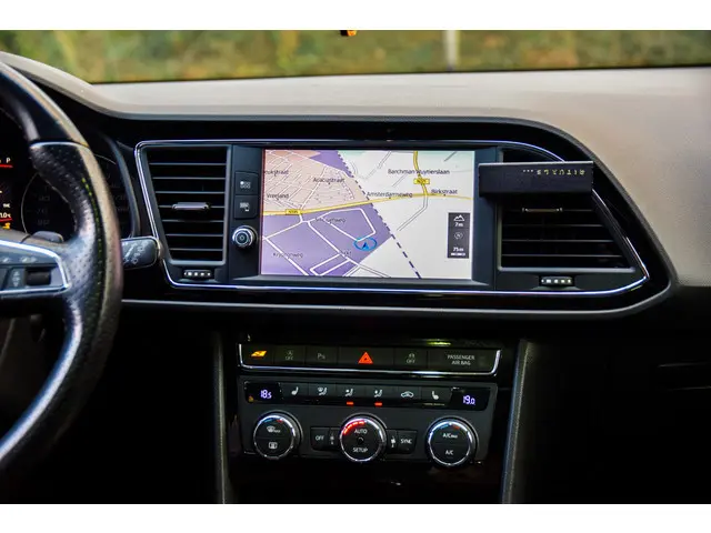 Uw nieuwe auto staat klaar voor vertrek. Stap gerust in, deze SEAT Leon ST heeft 140000 kilometer gelopen. Met zijn benzinemotor en automatische transmissie is dit een prima auto voor nog vele kilometers. Altijd een goede zitpositie bij iedere snelheid, dankzij de sportstoelen. Bij de rijke uitrusting horen ook 19 inch lichtmetalen velgen, LED koplampen, sportonderstel, adaptief dempingsysteem, extra getint glas en in delen neerklapbare achterbank.Omdat u nou eenmaal geen ogen in uw achterhoofd heeft, is het altijd lastig om achteruit te rijden zonder brokken te maken. De achteruitrijcamera lost dat probleem op. Kies de muziek waarvan u houdt, dankzij de DAB-radio klinkt het altijd geweldig. Intussen bedient u het audiosysteem en het navigatiesysteem met harde schijf met de knoppen op het stuur. Of het buiten nu warm is of koud, dankzij automatische airconditioning is het binnen altijd behaaglijk. In deze SEAT kunt u zich concentreren op het verkeer, terwijl de auto de omgeving voor u in de gaten houdt. Een automatisch inschakelbare verlichting zorgt dat de verlichting aangaat als het donkerder wordt - in tunnels bijvoorbeeld - en de regensensor schakelt de ruitenwissers in als het nodig is. U hoeft er niets aan te doen. De cruise control zorgt voor een mooie, gelijkmatige snelheid die u zelf instelt. Dat is relaxt! Met sportstuur met schakelpaddels, keyless entry, automatisch dimmende binnenspiegel, centrale deurvergrendeling met afstandsbediening, boordcomputer en lederen versnellingspook is deze auto helemaal compleet.
