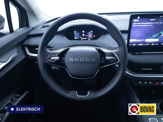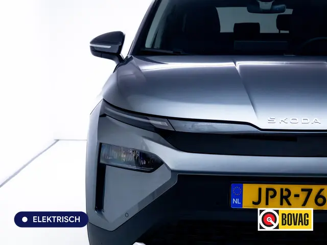 Druk het gaspedaal in en voel de fenomenale kracht van de elektromotor. In een elektrische auto rijdt u tegelijk dynamisch en ontspannen. Met zijn krachtige elektromotor biedt deze auto een uitzonderlijk rijgenot. De krachtige motor geeft deze ŠKODA uitstekende prestaties. Laat de kou maar komen! U zit altijd goed met de heerlijke stoelverwarming. Natuurlijk behoren 19 inch lichtmetalen velgen, LED koplampen, geluidsisolerende ramen, in delen neerklapbare achterbank en LED-achterlichten ook tot de uitrusting van deze complete auto.Het digitale dashboard stelt u in staat uw cockpitinterface te personaliseren. Soepel inparkeren in de krapste parkeervakken. De achteruitrijcamera maakt het mogelijk. Adaptive cruise control houdt de ingestelde snelheid vast en houdt automatisch afstand tot uw voorligger. Na een lange werkdag in de file: daar zit niemand op te wachten. Gelukkig helpt de file assistent een handje. Het radarsysteem meet de ruimte tot de voorligger en bewaakt de juiste afstand. Stilstaan? Dan remt en stopt de auto vanzelf. Handig en veilig: Connected Services. Alle vitale functies en data van de auto checkt u via de app op uw smartphone. Natuurlijk behoren navigatiesysteem, electronic climate control, draadloos opladen, DAB ontvangst, regensensor en keyless entry ook tot de uitrusting van deze complete auto.