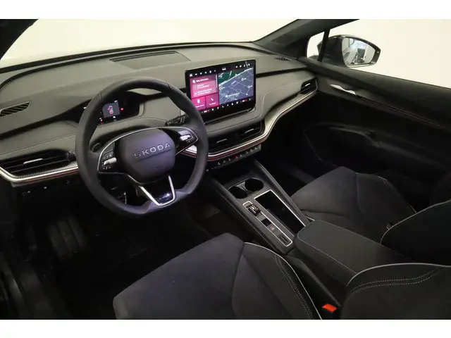 Duurzaam en dynamisch, de ŠKODA Elroq verenigt deze twee uitersten in zich. Dit is een auto uit 2025, er staat 9 kilometer op de teller. Geruisloos genieten tegen lage kosten? Dan is deze elektromotor iets voor u! De krachtige motor geeft deze ŠKODA uitstekende prestaties. Bestuurder en bijrijder krijgen een warm welkom: deze ŠKODA Elroq is voorzien van verwarmbare voorstoelen. De behaaglijkheid van de verwarmde achterbank zal ook uw passagiers bevallen. Tot de voorzieningen van deze auto behoren 20 inch lichtmetalen velgen, LED koplampen, sportonderstel, geluidsisolerende ramen, sportinterieur en in delen neerklapbare achterbank.Stel de interface voor uw cockpit naar wens in met het digitale dashboard van deze auto. Zodra u naar de 'R' schakelt, gaat de achteruitrijcamera in werking en heeft u een perfect zicht op alles wat zich achter de auto afspeelt. Adaptive cruise control houdt de ingestelde snelheid vast en houdt automatisch afstand tot uw voorligger. Rijden-stilstaan, rijden-stilstaan. Niks is irritanter en vermoeiender dan filerijden. Daar heeft deze ŠKODA Elroq een oplossing voor: de file assistent, die met radarmeting permanent het tempo aanpast op de voorligger. Zelfs als die stopt. Een slim verborgen extra is de elektrisch inklapbare trekhaak. Ook is de ŠKODA uitgerust met: dashboard met spraakbediening, connected drive services, navigatiesysteem, kruisend verkeer detectie, electronic climate control en draadloos opladen.