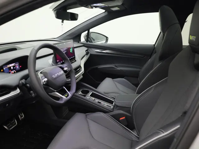 Druk het gaspedaal in en voel de fenomenale kracht van de elektromotor. In een elektrische auto rijdt u tegelijk dynamisch en ontspannen. De modernste techniek is toegepast om u in alle rust en stilte van de rit te laten genieten. Daarbij zult u zien dat de tijd om de accu's op te laden enorm meevalt, en dankzij de flinke actieradius hoeft u dat ook niet zo vaak te doen. U kunt deze nieuwe auto nu direct verkrijgen, want hij is op voorraad. Beide verwarmbare voorstoelen hebben een geavanceerde massagefunctie, zodat u ook na een lange rit soepel uitstapt. Net als uw bijrijder. Dankzij de elektrische stoelbediening is het gemakkelijk om de optimale zitpositie te vinden. Een praktische extra is de elektrisch bedienbare achterklep die opent en sluit met een druk op de knop. Het glazen panoramadak zorgt voor een onovertroffen uitzicht. Wind, sneeuw, hagel, regen... allemaal vergeten als u het verwarmd stuurwiel in handen heeft. De koplampen met matrix LED-verlichting zijn het hoogst haalbare op het gebied van autoverlichting. Bij de zeer complete uitrusting van deze auto behoren ook 21 inch lichtmetalen velgen, adaptief dempingsysteem, geluidsisolerende ramen, sportinterieur, in delen neerklapbare achterbank en LED-achterlichten.Altijd de benodigde functies in beeld? Het digitale dashboard zorgt ervoor. De kracht van de 360 graden camera op deze auto resulteert in optimale zichtbaarheid en veiligheid. Als u de adaptive cruise control inschakelt, regelt de auto zelf de snelheid en de afstand tot de auto voor u. Geen handmatig gerommel meer; de elektrisch inklapbare trekhaak reageert met een druk op de knop. Deze Škoda Enyaq coupé iv is voorzien van remote services. Via uw smartphone bedient u diverse functies ook op afstand en krijgt u informatie over de status van uw auto. En deze auto heeft ook dashboard met spraakbediening, premium audiosysteem, navigatiesysteem, kruisend verkeer detectie, electronic climate control en draadloos opladen als standaard uitrusting.