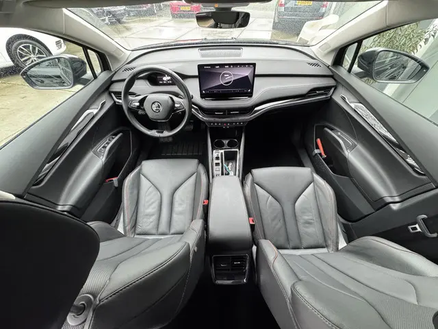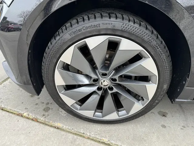 Iedere rit in een elektrische auto is een weldaad: u rijdt ontspannen en in alle rust, er is volop vermogen en u komt verkwikt op uw bestemming aan. De techniek van deze auto is radicaal anders dan u gewend bent. U rijdt zacht zoemend naar uw bestemming, de actieradius van de accu's is ruimschoots voldoende voor de meeste dagelijkse ritten. Een krachtige motor geeft deze auto zijn sportieve prestaties. Mooi en handig gaan perfect samen! Kijk maar naar het lederen interieur en de elektrisch bedienbare achterklep. 's Winters op pad gaan kan een behoorlijke uitdaging zijn. Daarom is deze ŠKODA Enyaq iV voorzien van weldadige verwarmbare voorstoelen. Zo'n verwarmd stuurwiel is een comfortabele extra, zeker in de winter. Voorzien van matrix LED-verlichting. De auto dimt precies dat deel van de lichtstraal waar de voor- of tegenliggers in rijden. De overige segmenten blijven aan en verlichten de weg. Tot de uitrusting behoren ook 21 inch lichtmetalen velgen, donker getint glas achter, in delen neerklapbare achterbank, LED-achterlichten en verstelbare lendensteunen.
