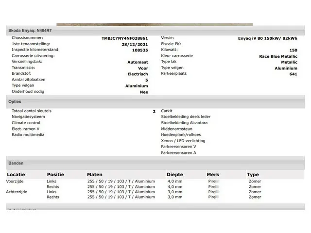 Voertuiggegevens van deze Skoda Enyaq