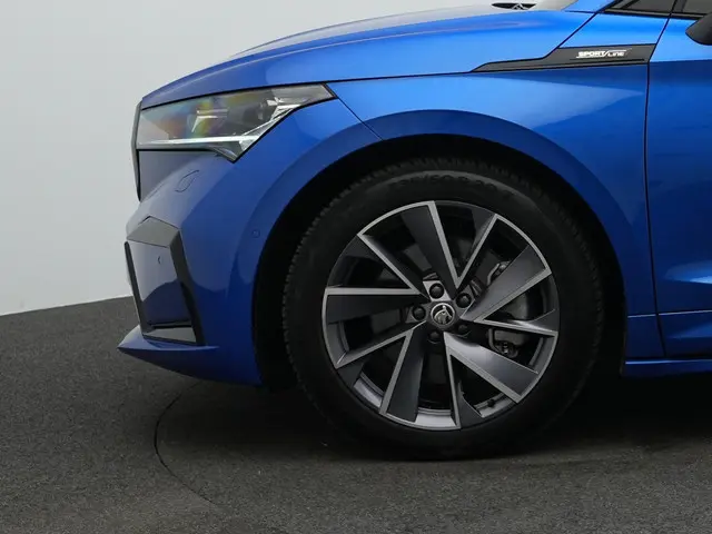 Skoda Enyaq iV Sportline- Stijlvolle SUV met sportieve signatuurDeze Skoda Enyaq iV 80 Sportline combineert krachtige elektrische prestaties met een uitgesproken sportief design. Uitgevoerd in Race Blue metallic met zwarte accenten, Sportline bumpers en 20 inch lichtmetalen velgen Vega antraciet, oogt hij strak en dynamisch. De elektrisch inklapbare trekhaak, dakrailing zwart hoogglans en Sunset (donker getinte ramen) versterken het stoere karakter zonder concessies te doen aan comfort en gebruiksgemak. Dit is een volledig elektrische SUV die uitstraling en functionaliteit perfect samenbrengt.