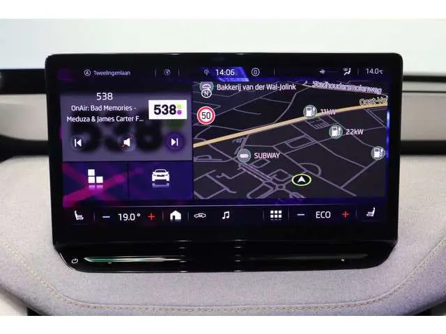 Druk het gaspedaal in en voel de fenomenale kracht van de elektromotor. In een elektrische auto rijdt u tegelijk dynamisch en ontspannen. De techniek van deze auto is radicaal anders dan u gewend bent. U rijdt zacht zoemend naar uw bestemming, de actieradius van de accu's is ruimschoots voldoende voor de meeste dagelijkse ritten. Een krachtige motor geeft deze auto zijn sportieve prestaties. De verwarmbare voorstoelen benadrukken nog maar eens dat we hier te maken hebben met een regelrechte verwenauto voor bestuurder en bijrijder. Het glazen panoramadak geeft u een ongekende rijsensatie: wat een licht en zicht! Fijn plusje, zeker in de kille dagen, is het verwarmd stuurwiel. In de winter wil iedereen mee. Zou dat komen door de verwarmde achterbank? Ook 21 inch lichtmetalen velgen, adaptief dempingsysteem, aluminium dakrailing, LED-achterlichten, verstelbare lendensteunen, metallic lak, verwarmde ruitensproeiers, elektrisch bedienbare ramen achter, elektrisch verstelde en verwarmde buitenspiegels en in delen neerklapbare achterbank horen tot de voorzieningen op deze auto.In deze Enyaq iV vindt u niet alleen schakelaars op het stuur om het full map navigatiesysteem te bedienen en het audio-installatiesysteem met DAB-ontvangst, maar er is ook spraakbediening. Onderweg uw smartphone opladen zonder gedoe met stekkers en kabels? Dat kan, met de draadloze oplaadmogelijkheid voor telefoons. Of het buiten nu warm is of koud, dankzij electronic climate control is het binnen altijd behaaglijk. Niets ontgaat het systeem van deze auto. De regensensor zorgt dat de ruitenwissers bij neerslag vanzelf aan gaan en de automatisch inschakelbare verlichting regelt de verlichting. Veilig afstand houden gaat automatisch met de adaptive cruise control en de parkeersensoren achter maken parkeren supersimpel. Sleutelloos instappen en wegrijden! De keyless start herkent de elektronische sleutel in uw bezit en start de motor met een druk op de knop.