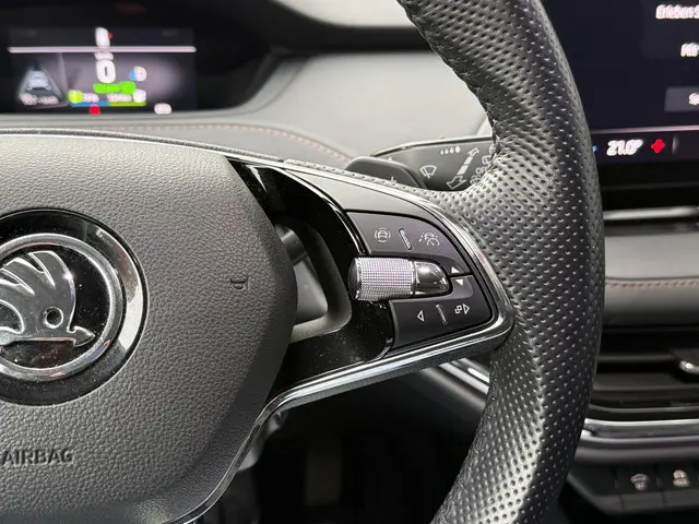 De vormgeving van deze ŠKODA Enyaq iV is geoptimaliseerd voor een optimale actieradius. Zo haalt u maximaal rijplezier uit elke kilometer. Power, stilte en nul procent uitlaatgas krijgt u met de elektromotor. De krachtige motor geeft deze ŠKODA uitstekende prestaties. Neem plaats op de comfortabele stoelen. Dankzij de elektrische bediening en het geheugen is het eenvoudig om hierin de beste zitpositie te vinden. De achterklep opent automatisch met een druk op de knop. Handig als u met volle handen staat. De uitmonstering van deze auto wordt gecompleteerd door onder meer 19 inch lichtmetalen velgen, LED koplampen, warmtewerend glas, in delen neerklapbare achterbank, LED-achterlichten en verstelbare lendensteunen.Snelheid, brandstofinfo, noem maar op. Het digitale dashboard houdt u permanent op de hoogte. Goed en overzichtelijk. Wat een gemak, die achteruitrijcamera. Alles in beeld zonder capriolen. Spraaksturing betekent dat u verschillende functies met uw stem kunt bedienen. Wat is de onderhoudsstatus van deze auto? U checkt het snel, simpel en overal via uw smartphone. Er is geen bestemming die het aanwezige navigatiesysteem niet kent. Dat rijdt lekker! Natuurlijk behoren automatische airconditioning, schakelpaddles aan het stuur, DAB ontvangst, regensensor, cruise control en automatisch dimmende binnenspiegel ook tot de uitrusting van deze complete auto.